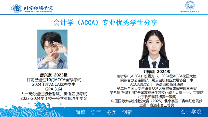 此外,2023级的房兴家和2024级的尹梓菡两位优秀学生也分享了他们在会计学(ACCA)专业的学习心得和成长历程。他们认为ACCA专业课程内容丰富,班级学习氛围浓厚,能够帮助学生快速掌握专业知识,培养了学生的批判性思维和国际化视野。通过一两年的专业学习,为未来的就业和深造打下了坚实基础。