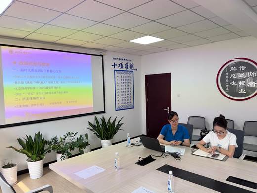 党委副书记鲁楠做班主任职责及迎新事项解读。鲁老师结合班主任队伍建设相关文件,介绍了班主任的角色定位和工作要求,围绕强化思想引领、深化班级管理、护航学生成长等方面详细梳理了工作要点与注意事项,并对班主任考核标准与激励机制进行了解读。最后,鲁老师就迎新工作事项进行了具体部署,为班主任明确了工作重点和流程。